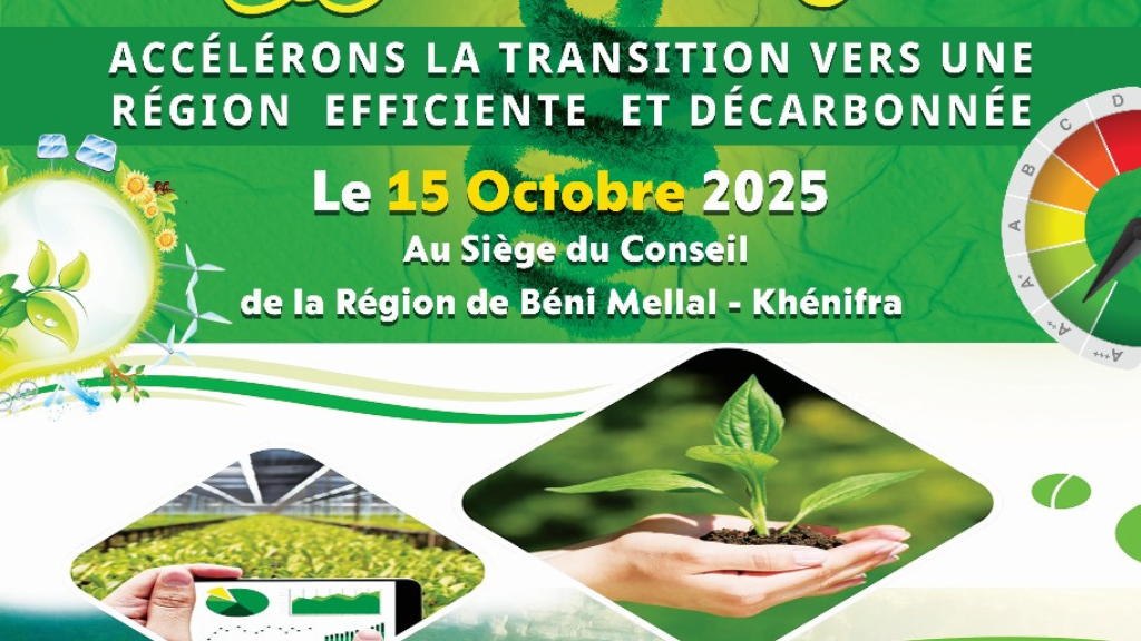 La Région de Béni Mellal-Khénifra organise, le mercredi 15 octobre 2025, un atelier régional sur le Plan d’Efficacité Énergétique et de Décarbonation de la Région, sous le thème « Accélérons la transition vers une région efficiente et décarbonée ». Cet événement se tiendra au siège de la Région et vise à présenter les actions prévues dans le plan régional et à engager une réflexion collective sur les modalités de mise en œuvre opérationnelle du plan.