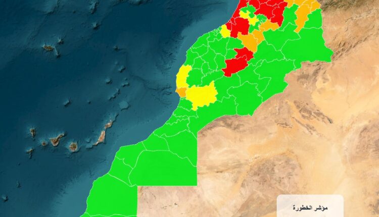 • Le « risque élevé » dans les provinces de M’Diq-Fnideq, Tétouan, Fahs-Anjra, Sefrou, Khénifra, Ifrane, Agadir-Ida -Ou-Tanane, Taourirt, Oujda-Angad, Nador, Berkane, Driouch.