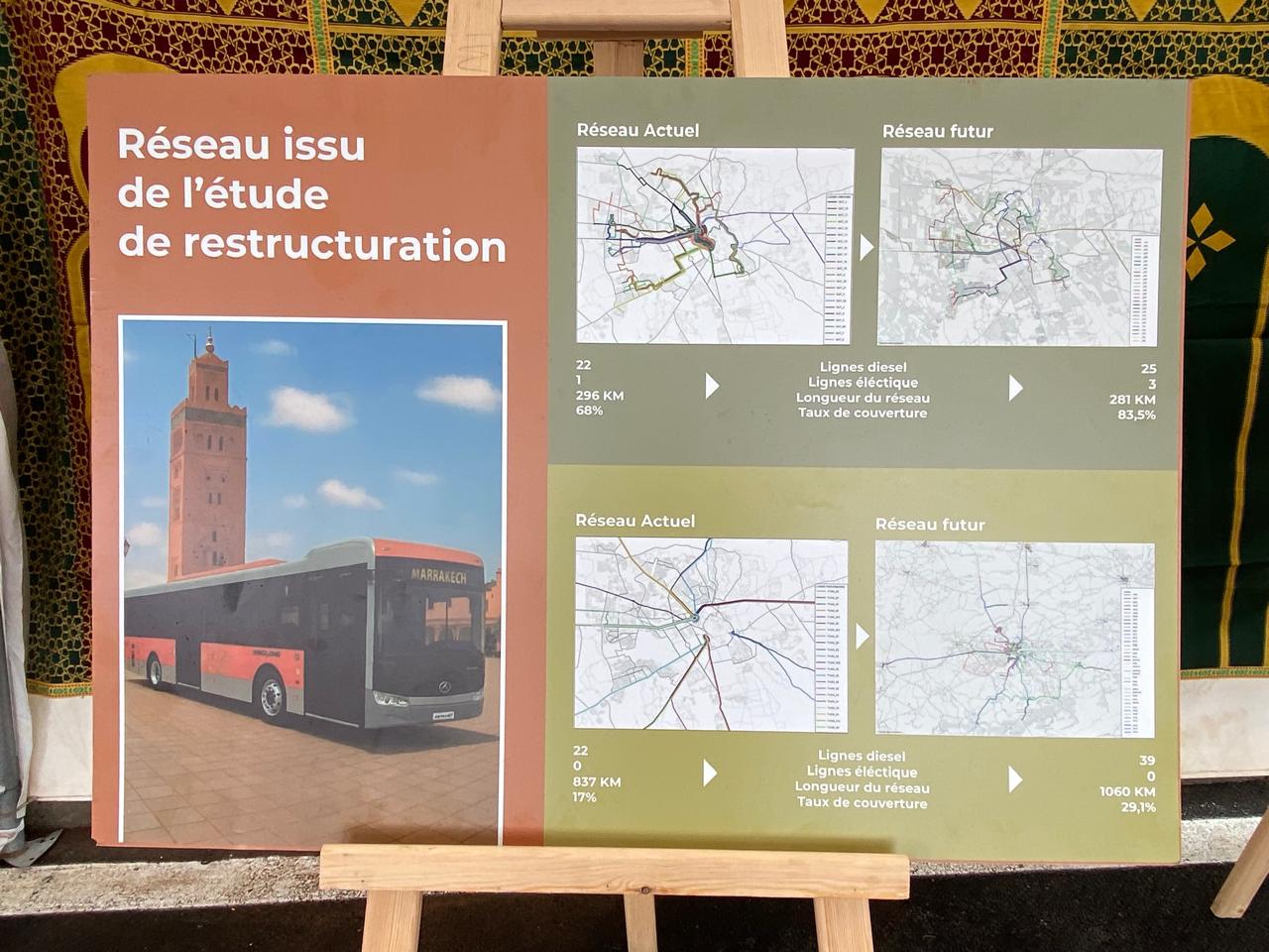 S’appuyant sur les résultats d’une étude globale de restructuration du réseau, le projet prévoit la mise en place d’un futur réseau composé de 25 lignes, dont trois électriques, s’étendant sur une longueur totale de 281 kilomètres. Le taux de couverture sera ainsi porté à 83,5 %, avec pour objectif d’assurer une meilleure desserte de l’ensemble des quartiers de la Cité Ocre et de sa périphérie.